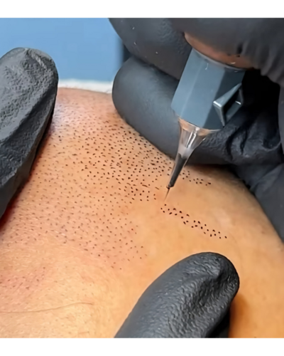 subtle tattoo between the lashes to create the illusion of a thicker lash line